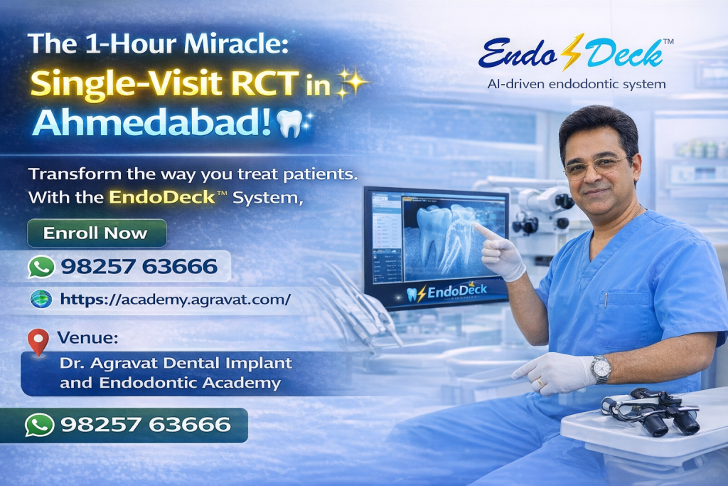 Are you tired of the traditional, time-consuming root canal protocols? Do you want to stand out in a competitive market and significantly increase your practice income? Join the digital revolution at the Dr. Agravat Dental Implant and Endodontic Academy.